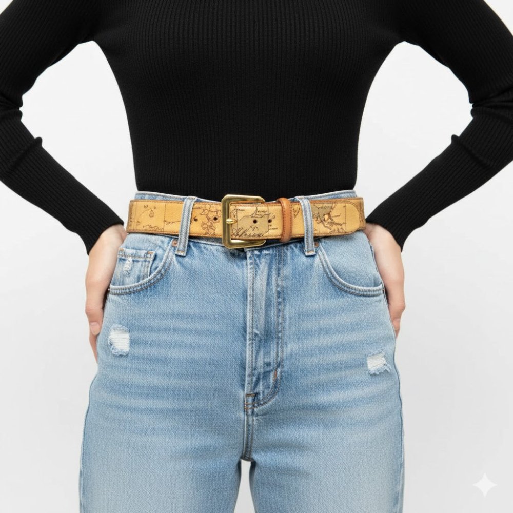 - Cintura Prima Classe in tessuto stampato con cartina geografica Geo Classic