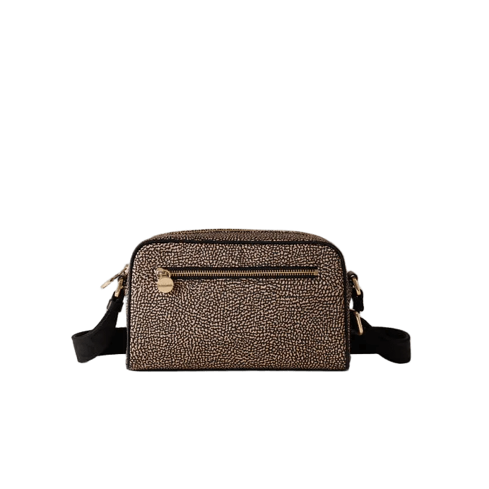 - Dettagli iconici: Chiusura principale e tasca esterna con zip e tiralampo a vite, distintivo simbolo del brand Borbonese.