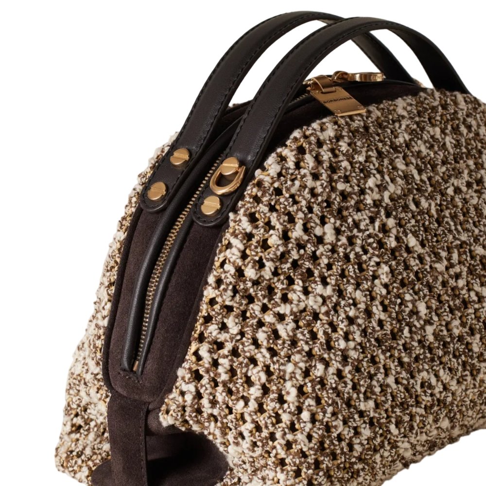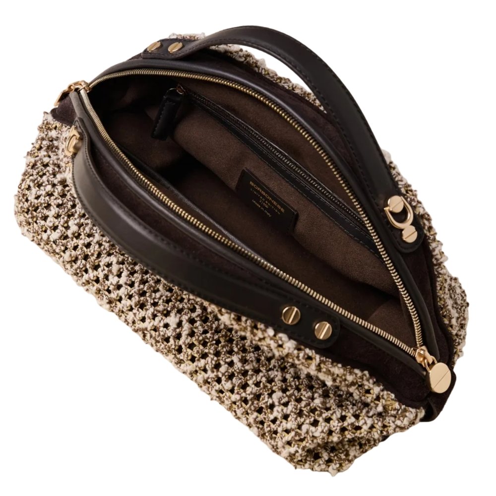 Un'edizione limitata che celebra la maestria artigianale di Borbonese attraverso un'esclusiva texture mélange. Questa Sexy Bag S combina le tonalità calde del caffè e dell'ebano in una trama intrecciata tridimensionale, creando un accessorio unico nel suo genere, capace di coniugare rarità e design iconico.
