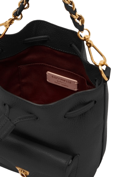 Coccinelle Beat è una tra le icone del brand: la distintiva chiusura a battente con il plettro è il simbolo d’identità Coccinelle, che per questa collezione si reinventa con funzionalità contemporanee ed eleganti.Il mini secchiello è impreziosito dal manico in pelle e catena, un mix perfetto tra struttura e morbidezza, tra praticità e design contemporaneo. Questo modello è realizzato in pelle lavorata tramite specifici macchinari e poi bottalata al fine di mantenerne la morbidezza. È una pelle molto resistente che si presta a una facile pulizia, ideale per un uso quotidiano.