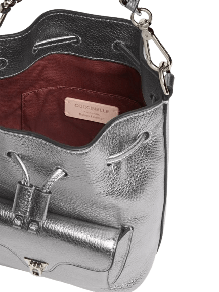 • Coccinelle Beat è una tra le icone del brand: la distintiva chiusura a battente con il plettro è il simbolo d’identità Coccinelle, che per questa collezione si reinventa con funzionalità contemporanee ed eleganti.Il mini secchiello è impreziosito dal manico in pelle e catena, un mix perfetto tra struttura e morbidezza, tra praticità e design contemporaneo. Questo modello è realizzato in pelle lavorata tramite specifici macchinari e poi bottalata al fine di mantenerne la morbidezza. È una pelle molto resistente che si presta a una facile pulizia, ideale per un uso quotidiano.