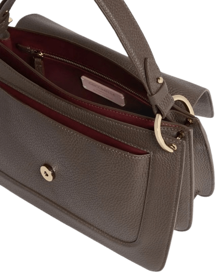 Una nuova firma entra a far parte del marchio, Coccinelle C-Me. Il logo reinterpretato attraverso la C di Coccinelle che si annoda e abbraccia il plettro, elemento iconico del brand, un'unione che si intreccia con la vita di una donna tra passato e presente. Le linee geometriche e le curve sofisticate rafforzano il design, mentre la costruzione a soffietti aggiunge un tocco di funzionalità e delicata eleganza a questa borsa che vuole essere la compagna essenziale della donna Coccinelle durante la sua giornata. Questo modello è realizzato in pelle lavorata tramite macchinari specifici e poi bottalata al fine di mantenerne la morbidezza. È una pelle molto resistente che presta una facile pulizia, ideale per un uso quotidiano.