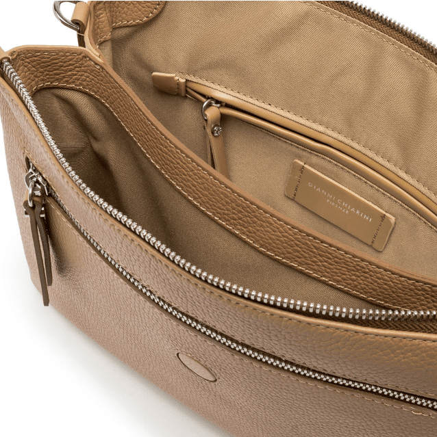 Scopri la Borsa Three di Gianni Chiarini Firenze, un accessorio che fonde innovazione e praticità in un design inconfondibile. Realizzata in pregiata pelle martellata, è pensata per la donna che desidera distinguersi con eleganza in ogni momento, dalla quotidianità alle serate più esclusive.