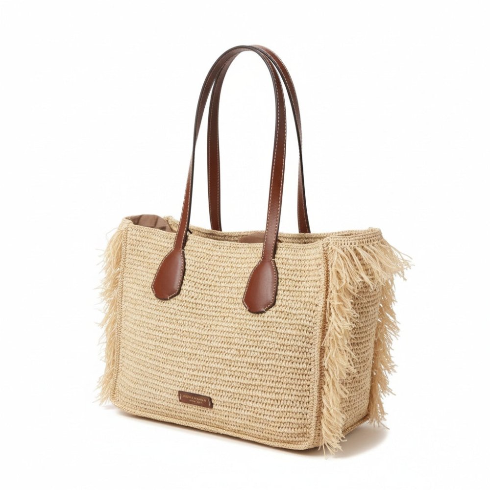 - Materiali: Realizzata in pregiato cuoio e rafia naturale, un abbinamento perfetto per la bella stagione.