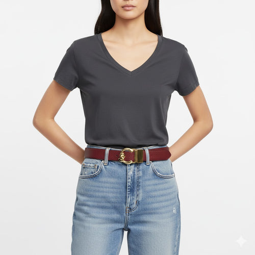 Coccinelle Cintura Logo C-Me Reversibile Ribes/Pink Clay