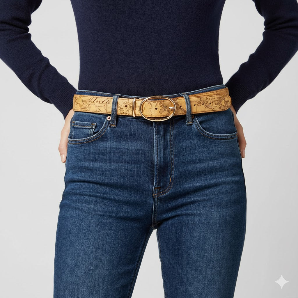 - Cintura Prima Classe in tessuto stampato con cartina geografica Geo Classic