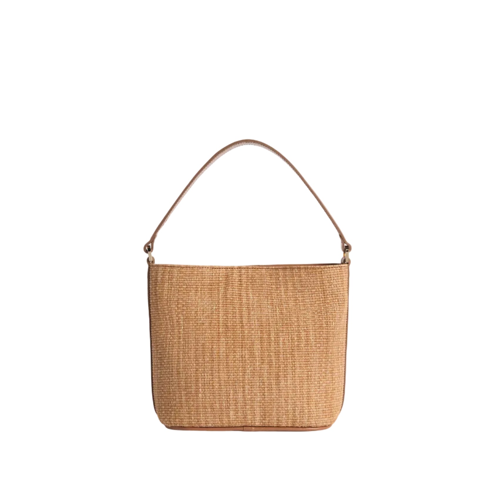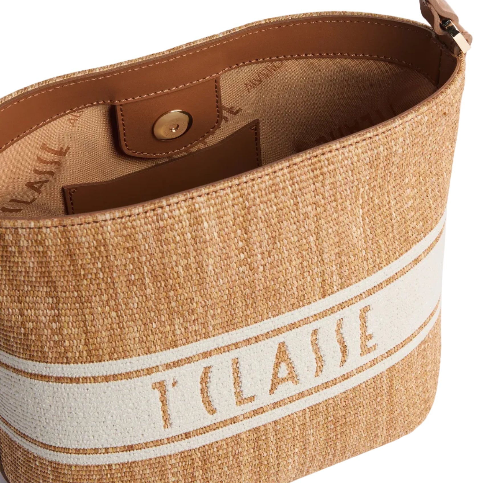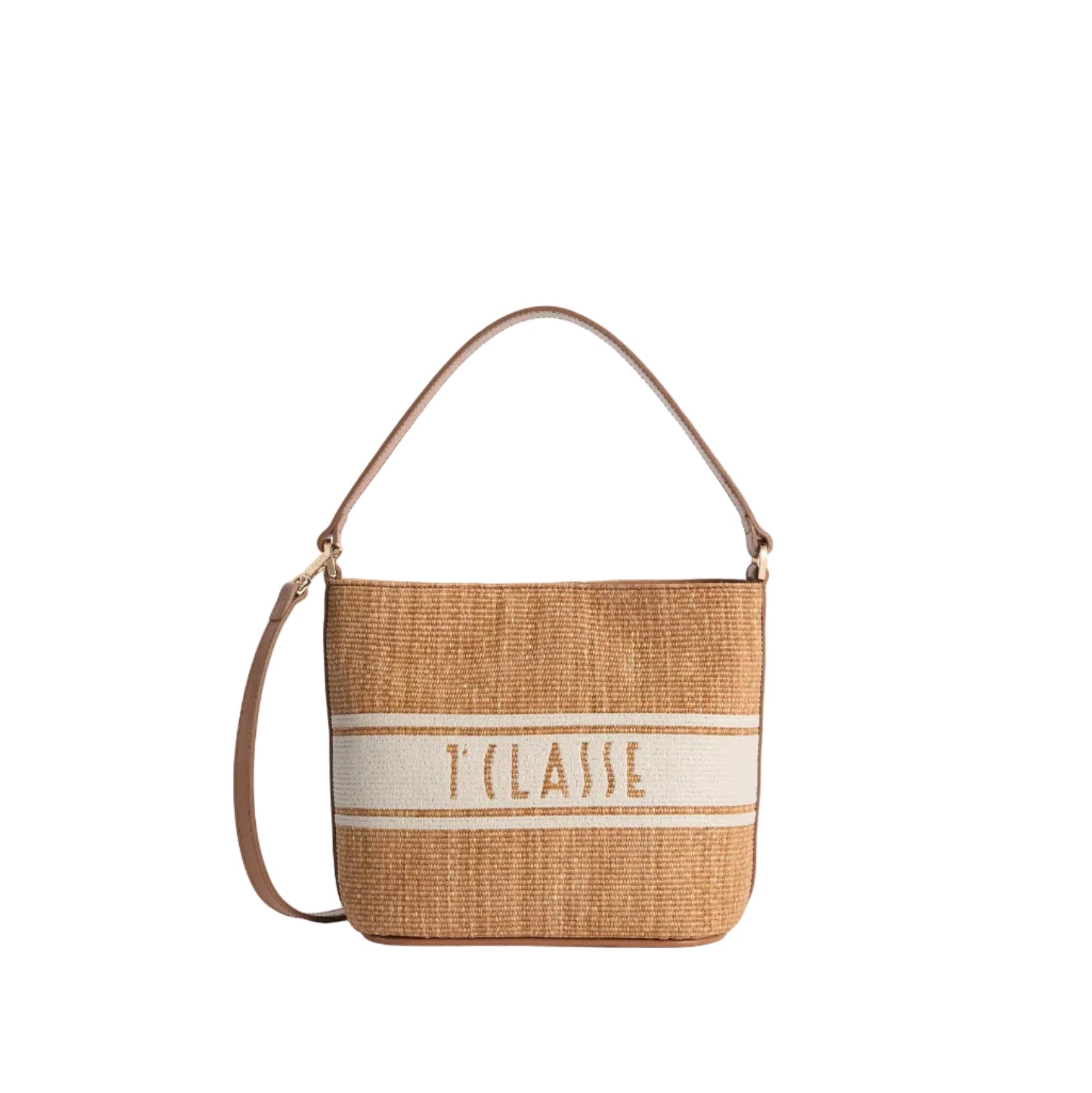 • Materiali Premium: Realizzata in tessuto effetto rafia, impreziosita da dettagli in pelle liscia color Cuoio.