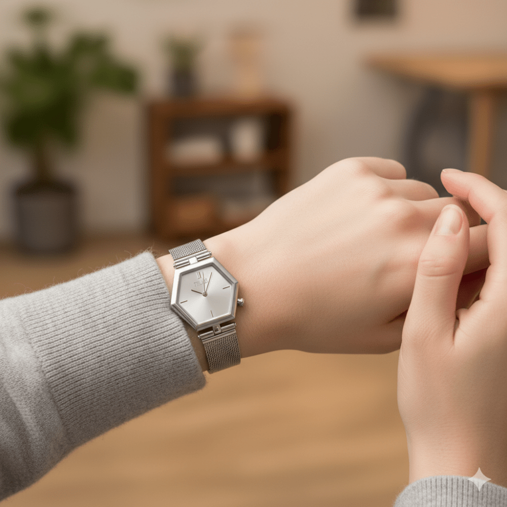Il fascino poetico dell'isola di Salina si concentra in questo orologio in acciaio inossidabile dal finish argentato. L'unicità del quadrante esagonale aggiunge una nota distintiva al design pulito e lineare che lo rende perfetto da indossare ogni giorno.