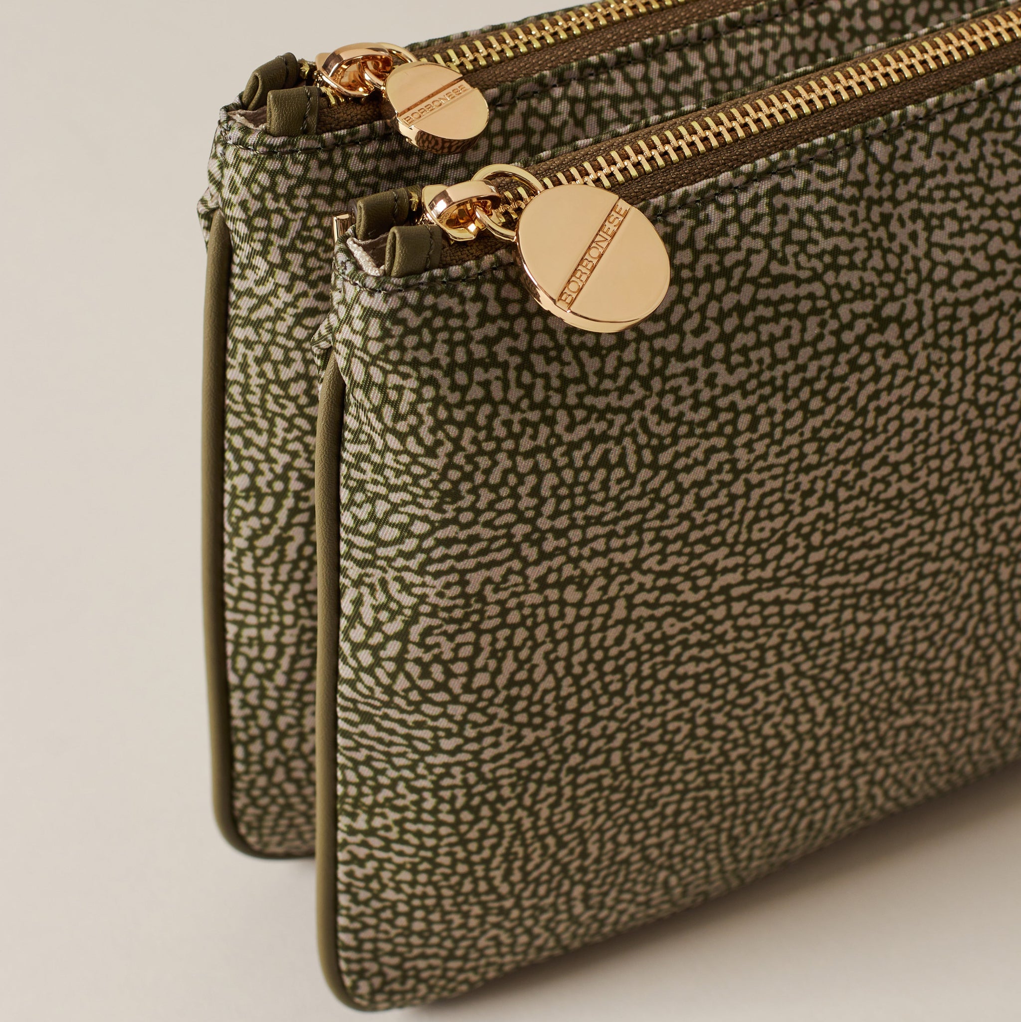 - Chiusura: Doppia chiusura con zip, impreziosita da tiralampo a vite, iconico simbolo del brand.