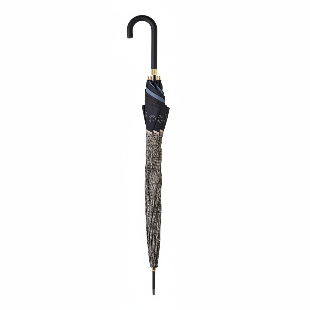 Impugnatura a Gancio: Manico curvo ergonomico in tonalità nera, rifinito con un anello dorato che aggiunge un punto luce lussuoso.