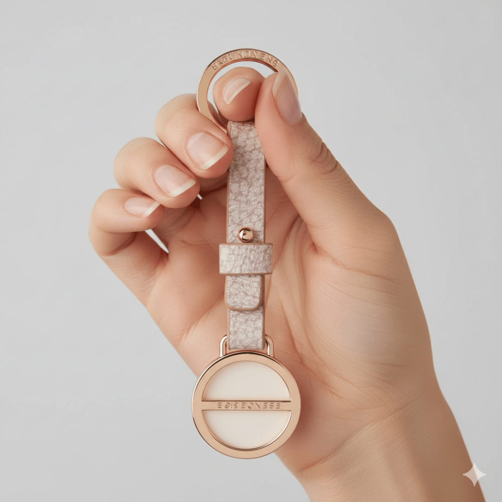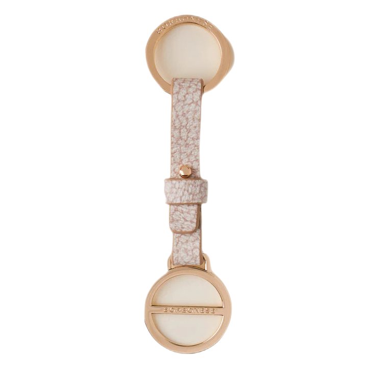 Portachiavi di metallo e tela rivestita OP con ciondolo a forma di rivetto logato, iconico simbolo del brand. Può essere utilizzato come charm per impreziosire la tua borsa preferita. Galvanica in oro chiaro.
