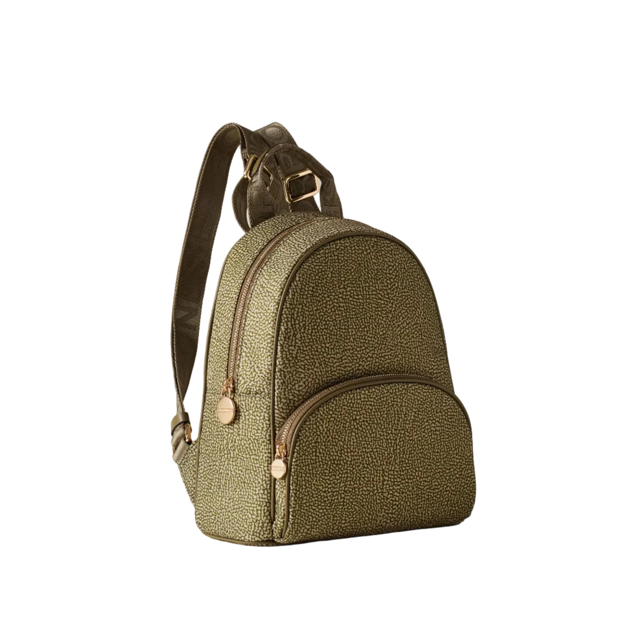 Entra nel mondo dell'eleganza grafica con lo Zaino Portrait Medium di Borbonese, un accessorio che unisce design distintivo e sostenibilità, ideale per la donna moderna che non rinuncia allo stile.