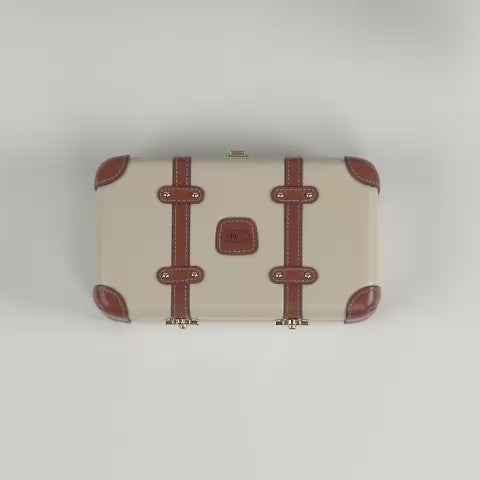 Estetica Iconica: Il guscio rigido richiama il design distintivo della collezione Bellagio, impreziosito da inserti in vera pelle di mucca e raffinati rivetti dorati.