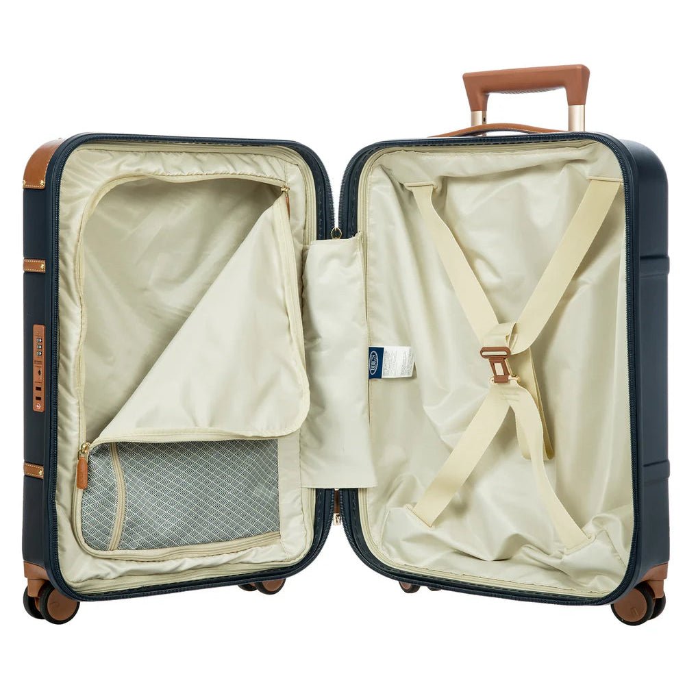 Il trolley cabina della collezione Bellagio rappresenta il design più celebre e distintivo di Bric's. Unendo un'estetica rétro ai materiali più avanzati, questo bagaglio è la scelta ideale per chi cerca eleganza senza rinunciare alla funzionalità durante i viaggi di lavoro o i weekend fuori porta.