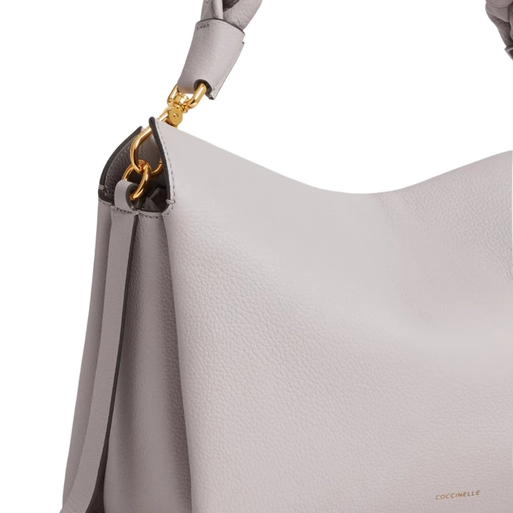La linea Boheme di Coccinelle è l'espressione perfetta di una femminilità contemporanea e raffinata. Questa hobo bag dal design morbido si distingue per il suo iconico manico intrecciato, ideale per la donna dinamica che cerca un accessorio spazioso e funzionale.