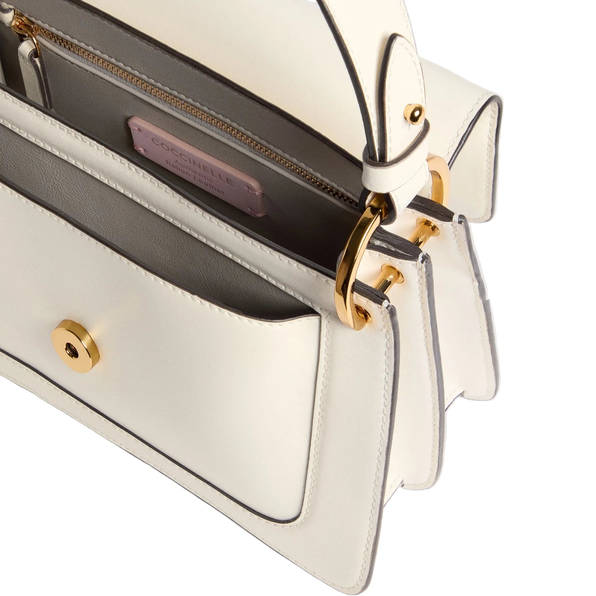 - Finiture: Hardware metallico dorato lucido che esalta la luminosità della pelle.