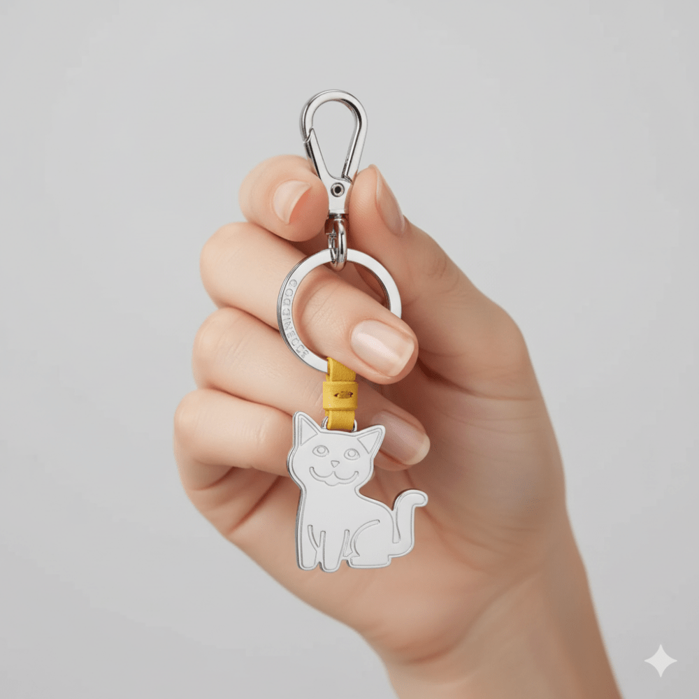 Prezioso portachiavi in pelle e metallo con anello. Ideale per personalizzare la propria borsa o un mazzo di chiavi.
