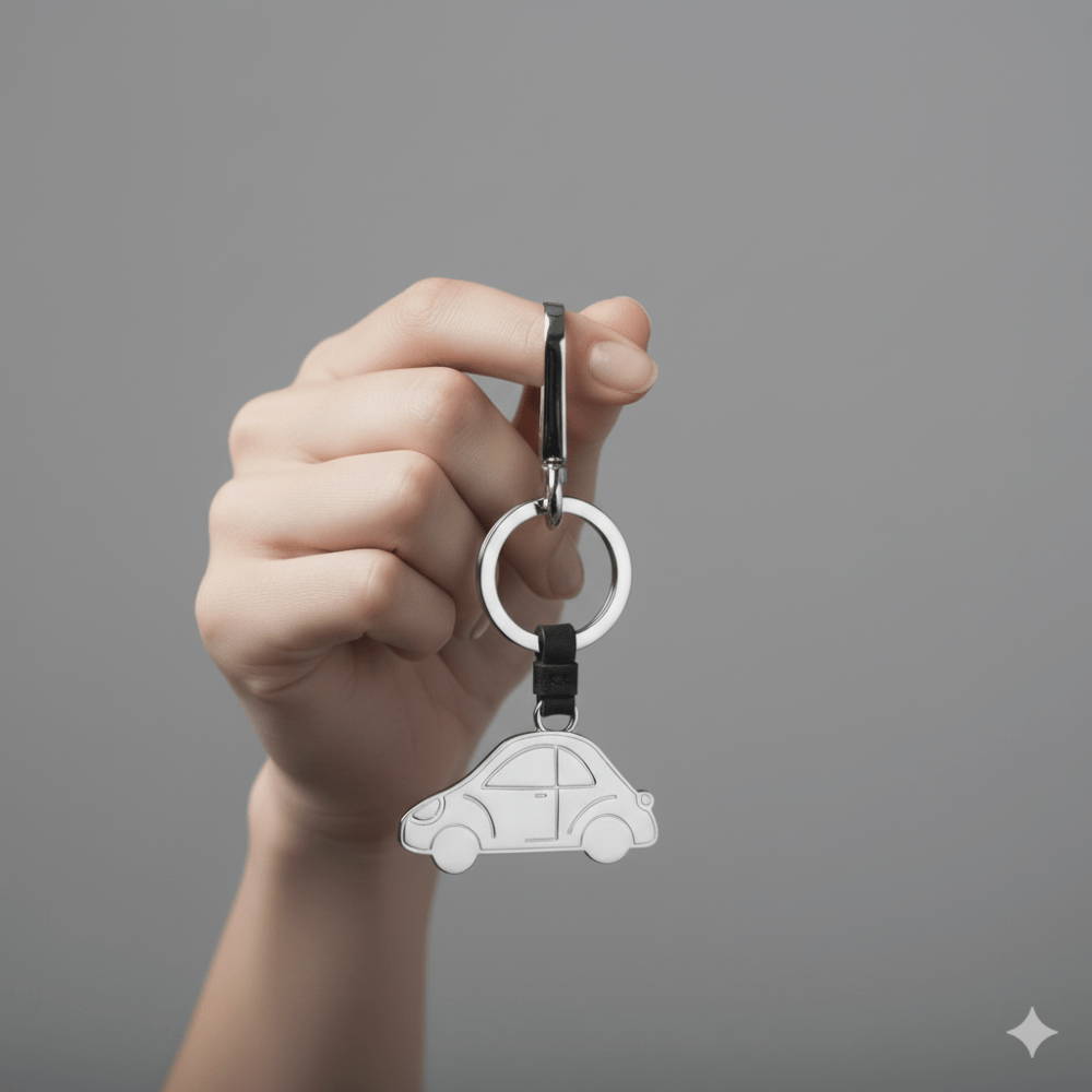 Prezioso portachiavi in pelle e metallo con anello. Ideale per personalizzare la propria borsa o un mazzo di chiavi.