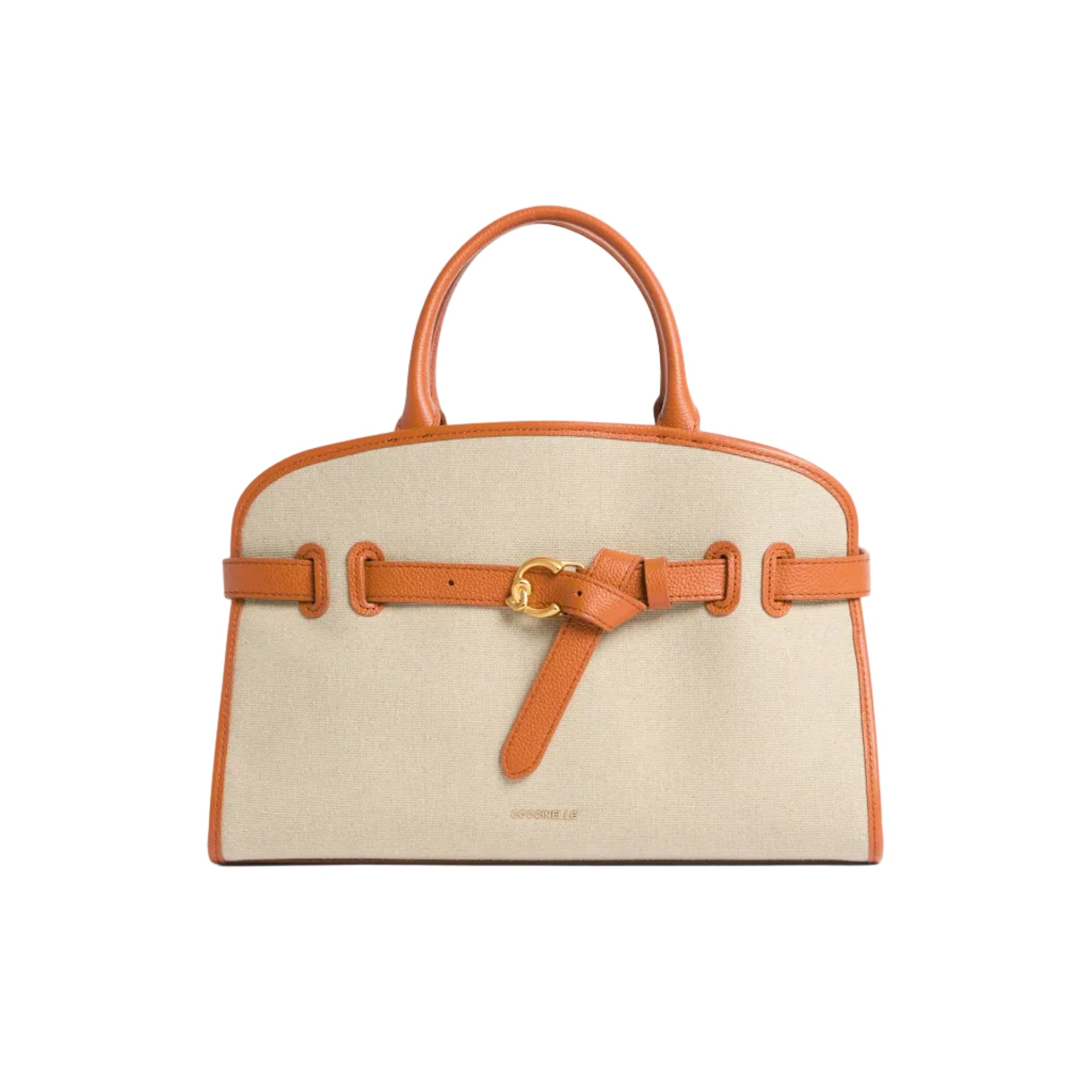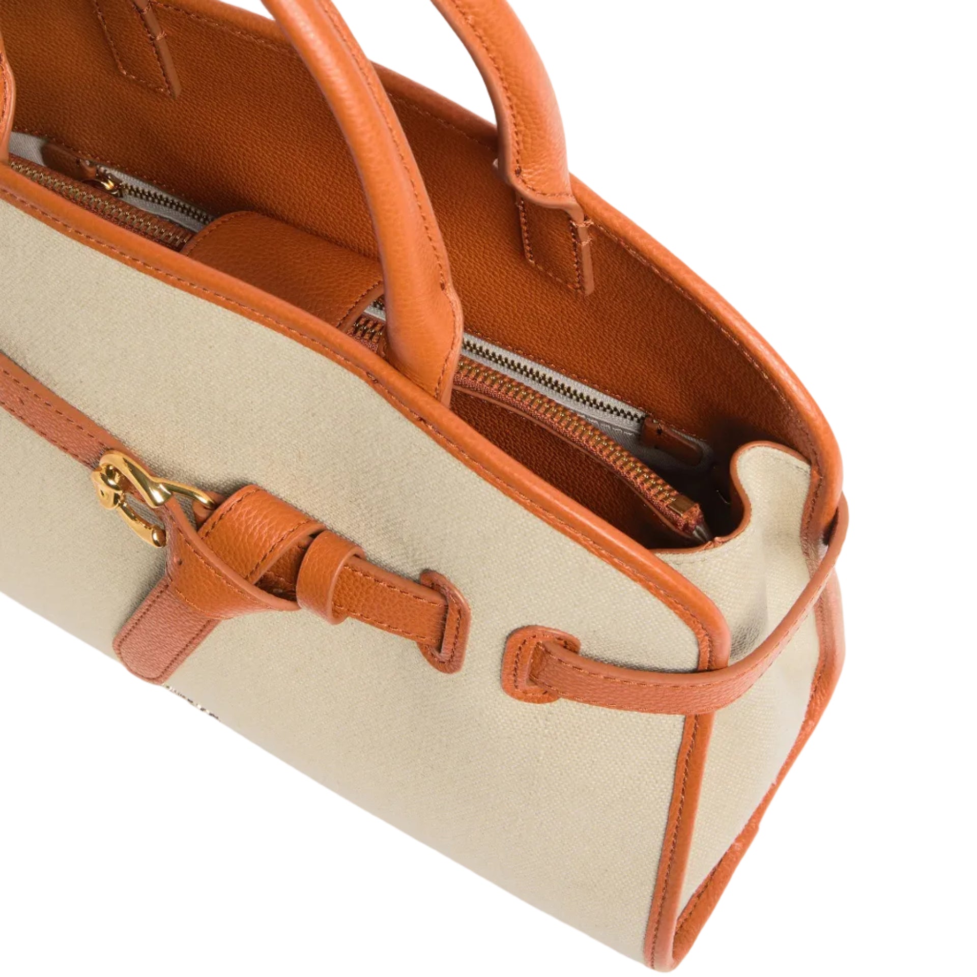 - Materiali Principali: Pregiato tessuto di lino e cotone, arricchito da dettagli e manici in pelle con micro grana.