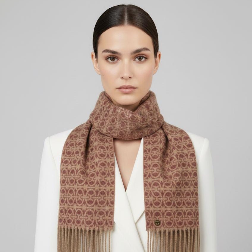 Rendi speciale ogni tuo look con la sciarpa con frange della linea Coccinelle Monogram caratterizzata da un disegno all over del nostro iconico monogram attraverso un gioco di bicolore.