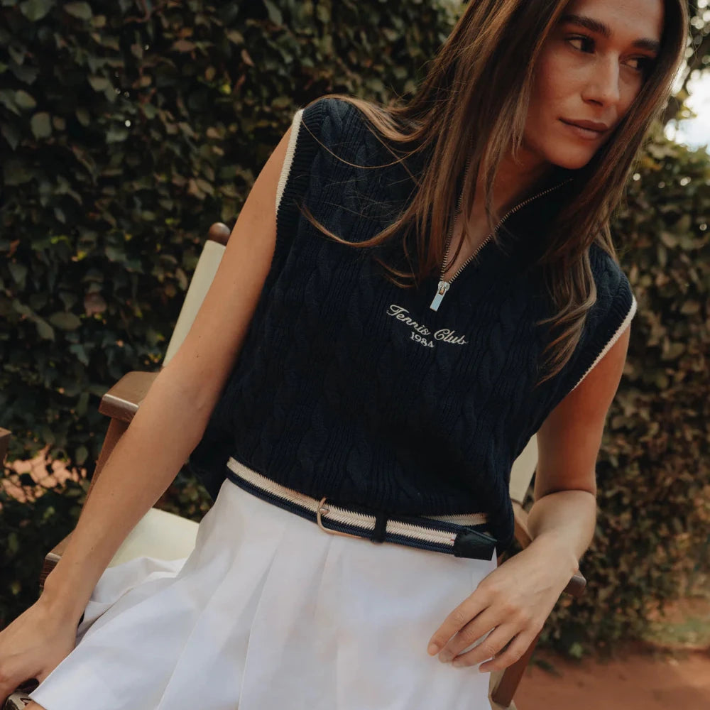 - Descrizione Colore: Un'armoniosa combinazione di blu intenso e bianco puro, creando un motivo chevron distintivo e raffinato, ideale per elevare qualsiasi look.