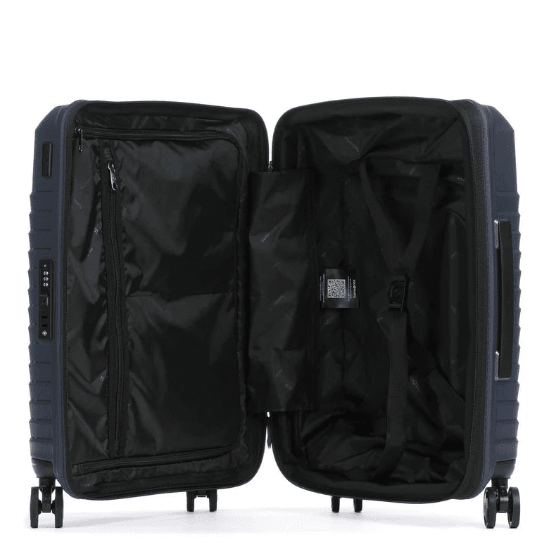 - Organizzazione Interna Intelligente: Fodera in poliestere con logo, scomparto principale spazioso, divisorio interno, cinghie fermabiti e tasca con zip per tenere tutto in perfetto ordine.