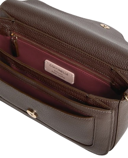 Una nuova signature entra a far parte del brand, Coccinelle C-Me. Il logo reinterpretato attraverso la C di Coccinelle che si annoda e abbraccia il plettro, elemento iconico del brand, un'unione che si intreccia con la vita di una donna tra passato e presente. Le linee geometriche e le curve sofisticate rafforzano il design, mentre la costruzione a soffietti aggiunge un tocco di funzionalità e delicata eleganza a questa borsa che vuole essere la compagna essenziale della donna Coccinelle durante la sua giornata. Questo modello è realizzato in pelle lavorata tramite specifici macchinari e poi bottalata al fine di mantenerne la morbidezza. È una pelle molto resistente che si presta a una facile pulizia, ideale per un uso quotidiano.